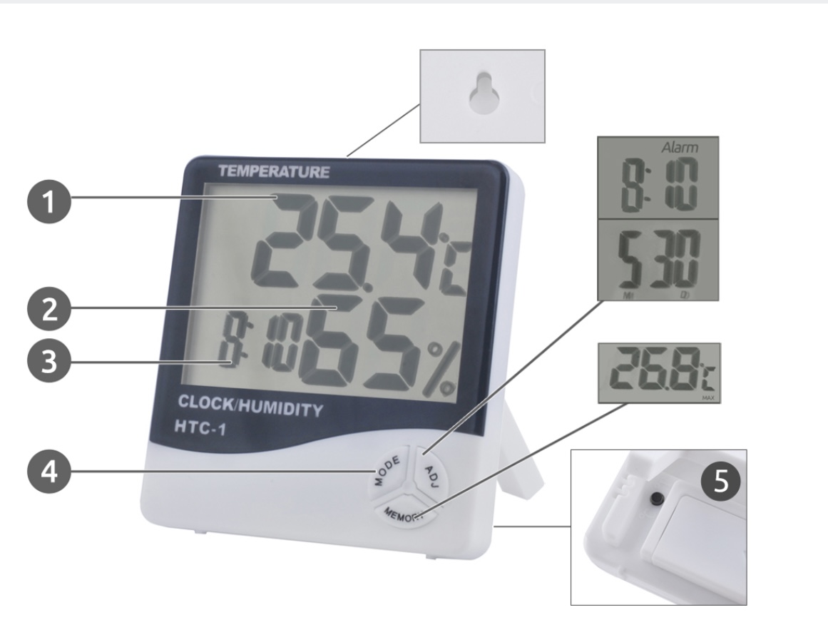 1. Termometr wewnętrzny (możliwość wyświetlania w C lub F)